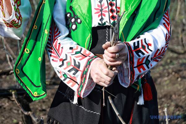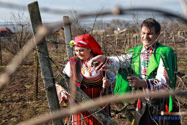 – Коли обрізаємо виноград, обов’язково поливаємо зрізані гілочки вином. У народі кажуть: «За здоров’я, на успіх, на врожай і дай Боже мир здобути». Зрізана лоза – оберіг. Її зав’язують червоною стрічкою, що символізує прихід весни, та залишають у будинках під дахом. Під кінець дійства на виноградник кладуть хліб, – пояснює нам Галина Бірюкова.