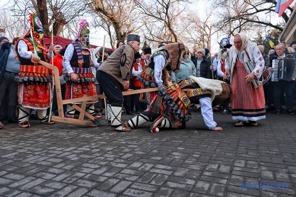 – Люди сіють, чекають на урожай хліба та винограду, приплід у худоби та птиці. Найголовніше – поповнення в родині. У руках кукерів – палиці, якими стукають по землі, – це символізує чоловічу силу, «запліднення» землі. На масках та взутті – фалічні символи, це також на продовження роду, – пояснив Русєв.
