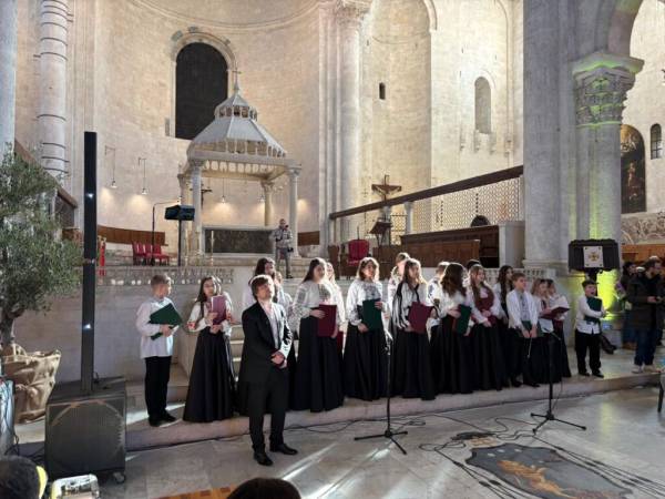 Хор музичної школи-інтернату зі Львова виступив у соборі Сан Сабіно в Італії Фото 13.02.2026 13:47 Укрінформ У Кафедральному храмі Сан Сабіно в італійському місті Барі уперше дав концерт хор учнів Львівського державного музичного ліцею імені Соломії Крушельницької.