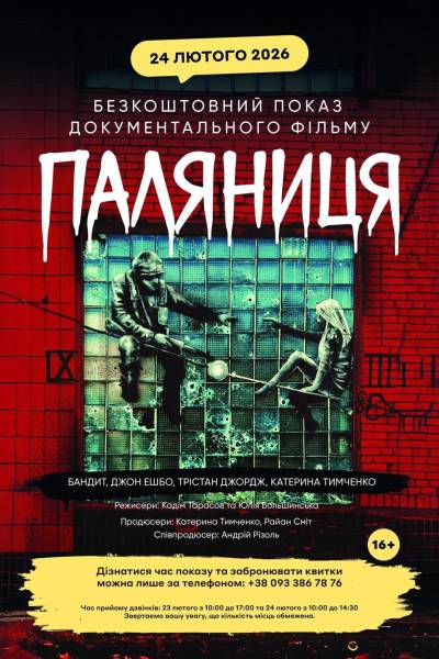 В Україні 24 лютого пройдуть безплатні перегляди документальної стрічки «Паляниця» Анонс 23.02.2026 12:59 Укрінформ До четвертої річниці повномасштабного вторгнення РФ, 24 лютого, у мережі кінотеатрів Multiplex по всій країні пройдуть безкоштовні сеанси документальної кінострічки «Паляниця» режисерів Кадіма Тарасова та Юлії Большинської.