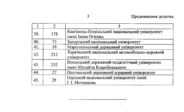 У їх числі – передові університети нашої країни. Йдеться, зокрема, про Київський національний університет імені Тараса Шевченка, Львівський національний університет імені Івана Франка, Харківський національний університет імені В. Н. Каразіна, Національний університет “Львівська політехніка”, Національний університет “Київський політехнічний інститут імені Ігоря Сікорського”.