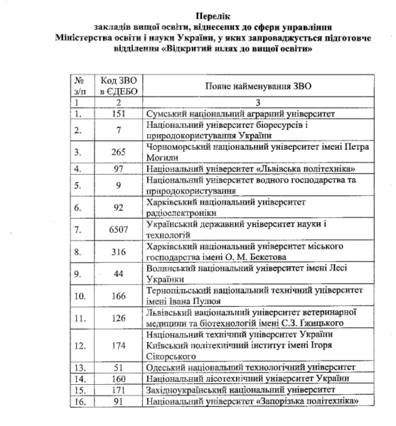 - Міністерство освіти і науки України видало перелік з 45 університетів, що будуть проводити зарахування на “підготовчий курс”.
